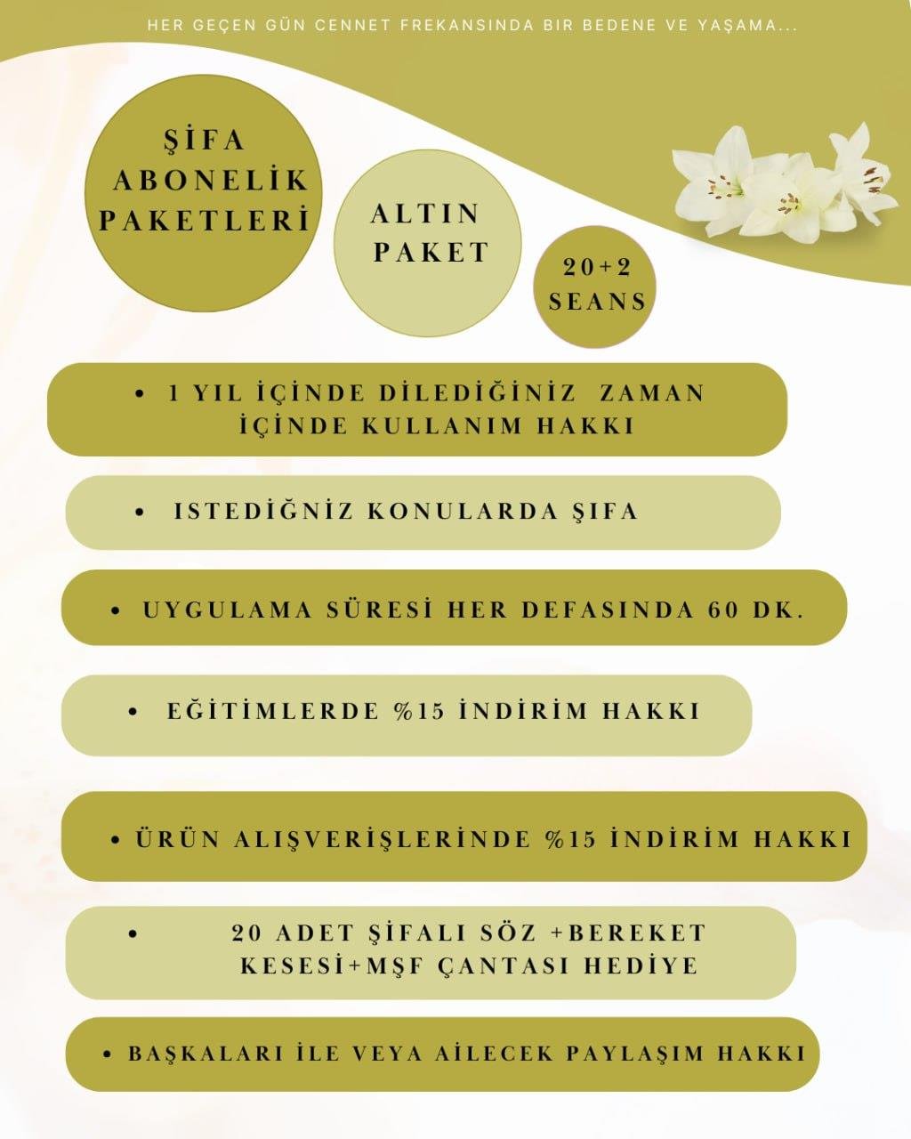 *Seans içerikleri sizin yaşamınız da değişim ve şifa istediğiniz konularda karar verilerek yapılır. Uygulamalar yalnızca Ferhan Sezer Altın Çağın Eğitimleri içeriklerinden yapılmıştır.